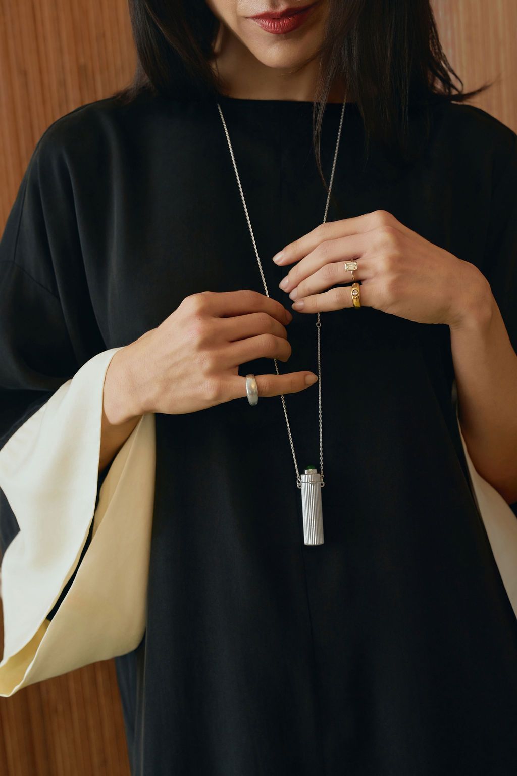 Alexis designed three objects as part of our Chantelaine Capsule—pieces intended to be worn around the neck, held in the hand, pinned to the body, or styled however you choose. Each may be worn individually as a singular statement or layered in combination. Together, the works explore adornment as both utility and emotional anchor: objects worn not simply to decorate, but to hold, protect, and empower.